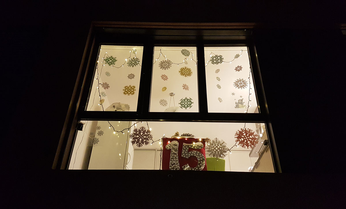 Durant le mois de décembre 2021, les fenêtres de nos logements et activités ont été décorées sur le thème de Noël et du calendrier de l'Avent. Vous retrouvez ici quelques photos prises depuis la cour intérieure. Bonne et heureuse année à tous les habitants!